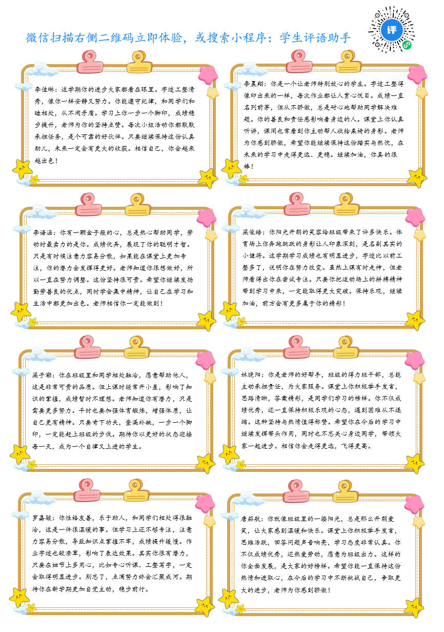 评语支持一键导出Excel、Word,海量精美模板套用,导出直接裁剪使用