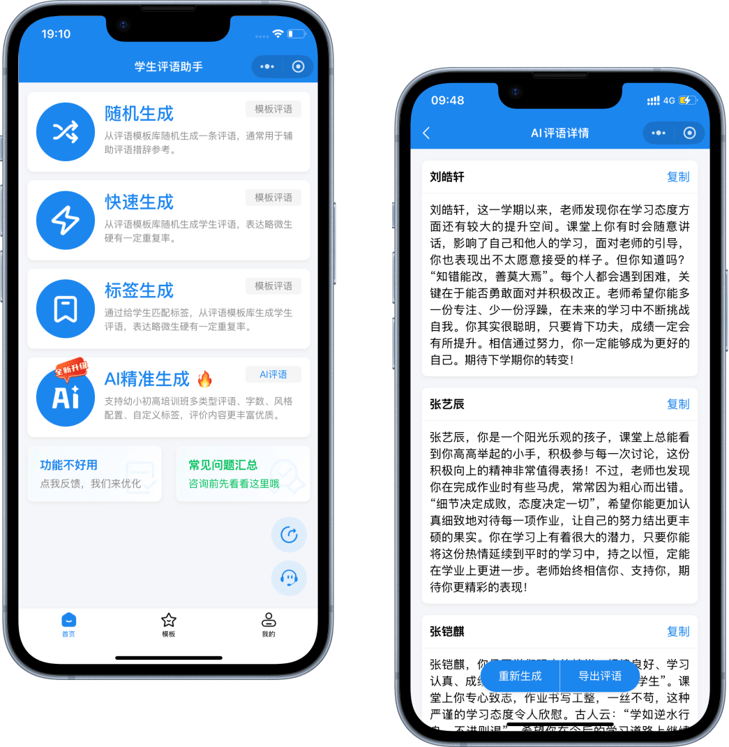 专业AI评语大模型,支持多风格配置,海量模板直接导出