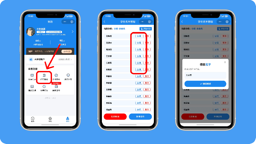 在我的-名单管理页面中,选择对应名字点击编辑即可。