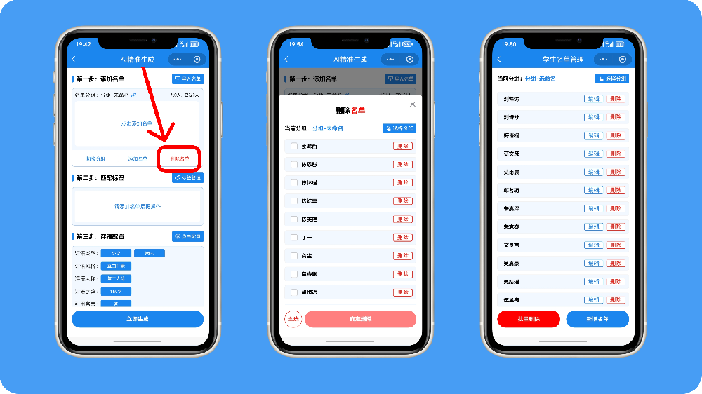 选择快速生成、标签生成或Ai精准生成其中一个功能,进入页面,点击删除名单,即可删除单个或批量删除名单。或者在我的-名单管理页···